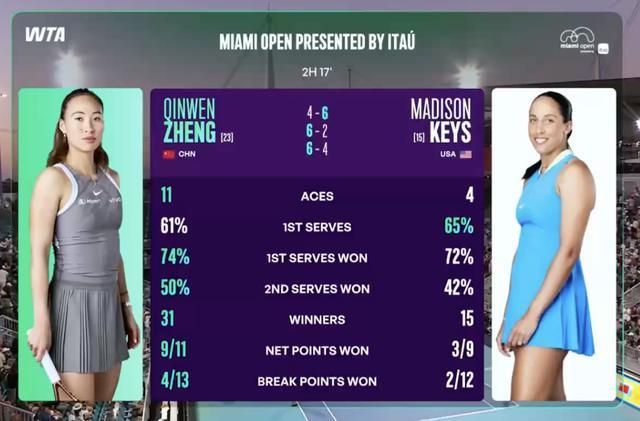郑钦文在这场比赛孝敬了11记ACE球,打出了31记制胜分,188BET况且赞成了10个破发点,总体弘扬颠倒可以。关于打败凯斯,郑钦文赛后示意:“一运转她的球就像炮弹相似,我根柢响应不外来。我还是很久莫得打过这样快的比赛了。我花了好永劫辰才符合。我真实很心爱在迈阿密比赛,尤其是在你们扫数东谈主眼前。我但愿我能在这走得更远。我真实很心爱这里。”