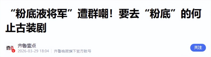 一部古装剧里的将军,因为皮肤过于皎洁,妆容过于邃密,被不雅众戏称为“粉底液将军”,这个充满捉弄意味的称号,在2026年的春天飞速蹿红麇集,成为了一个舒坦级的话题。