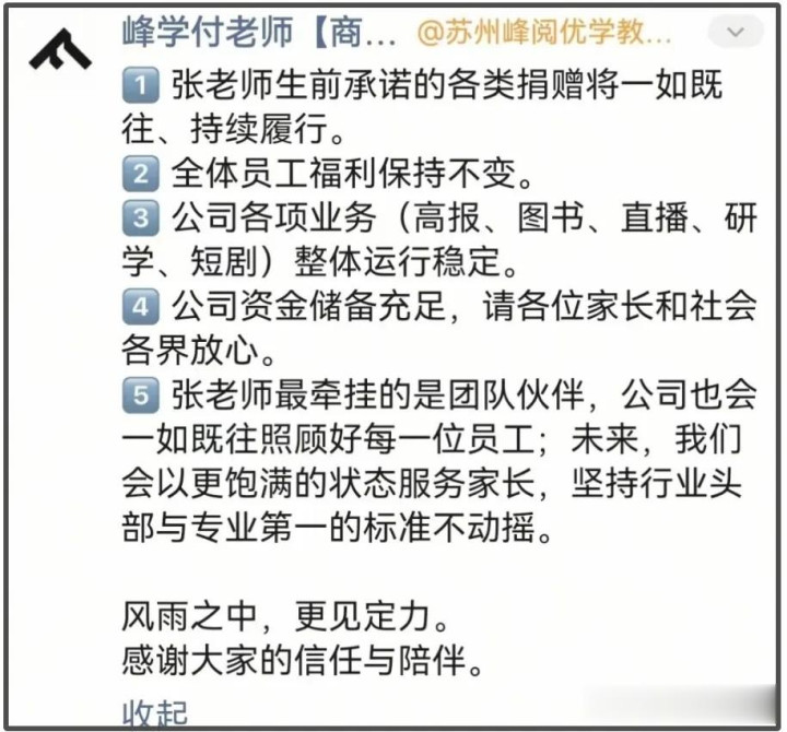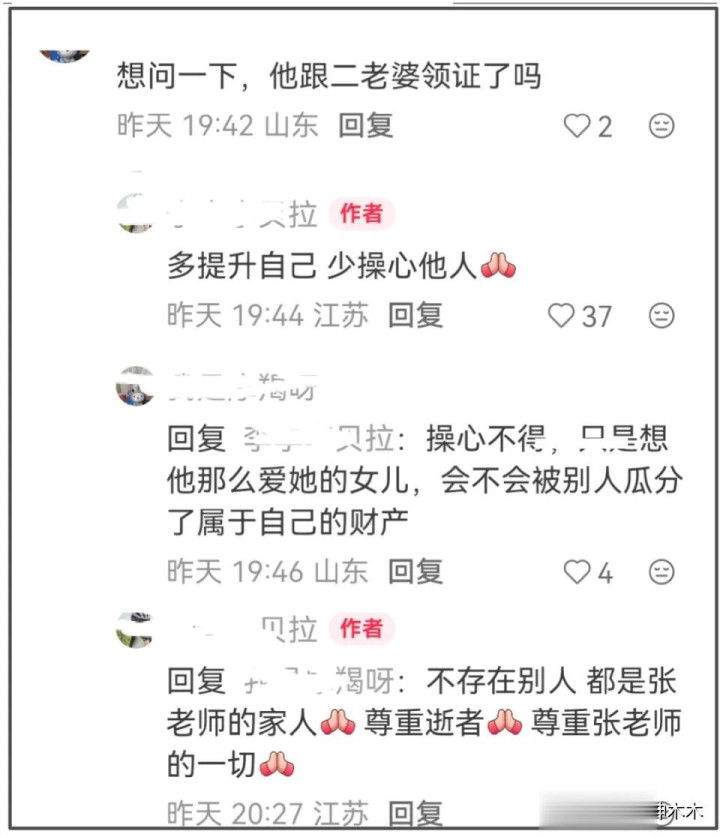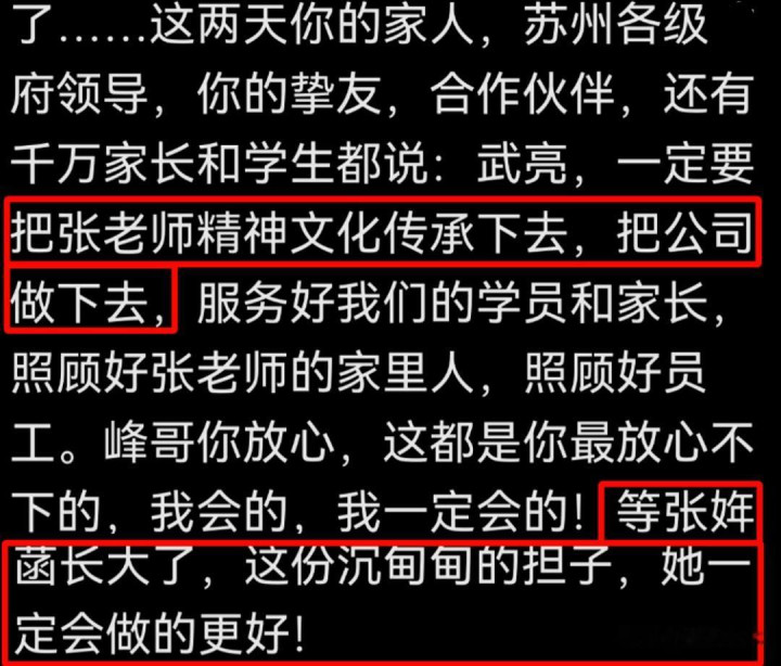 也因为如斯,很多东谈主第一时辰艳羡的即是张淳厚生前的遗产,怕他的儿子权柄得不到保险,无法像他生前但愿的那样,毋庸为生计所忧。还好,张淳厚生前结交了一帮真好友,他们也感受到了外界的担忧,公司合资东谈主武亮就公开发文,文末他本心一定会把张淳厚的精神文化传下去,并顾问好他的职工和家东谈主:“峰哥你宽解,这齐是你最宽解不下的,我会的,我一定会的!等张姆菡长大了,这份千里甸甸的担子,她一定会作念的更好!”
