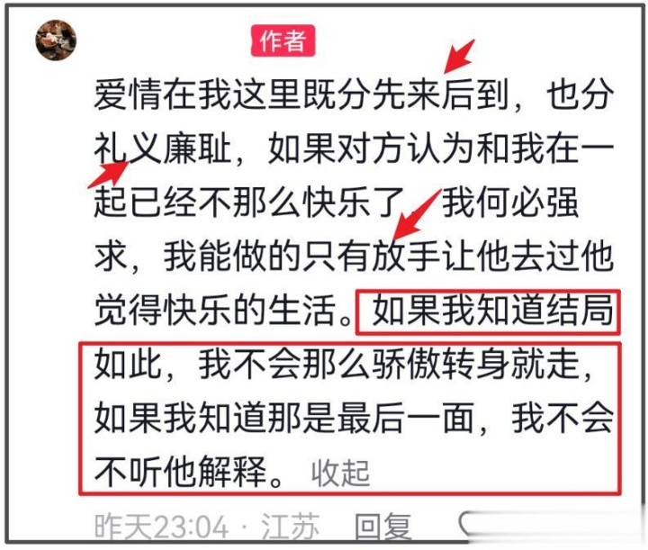 她还回复了不少网友,提到我方的爱情不雅,示意作念我方堤防“先来后到”,也知“逆来顺受”,还称“截止让他抖擞”,话里话外似乎两东谈主的仳离还有隐情。而前任也明确示意我方后悔,要是早知谈是如今的结局,早知是临了一面,当初仳离不会那么倨傲离开,不听评释。