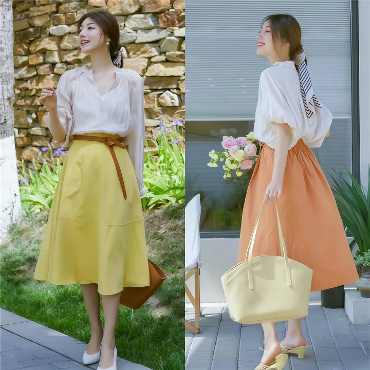 紧身包臀裙别买,春天穿低跟鞋蓝本走的是满足门道,底下再套一条牢牢箍着大腿和臀部的裙子悉数这个词画面就很违和,况兼紧身裙对腿型臀型的条件太尖刻,稍稍有点赘肉就全裸露了,宽松的A字版型或然微伞摆的裙子,才是信得过藏肉的承袭,风一吹,裙摆飘起来,还相配颜面。
