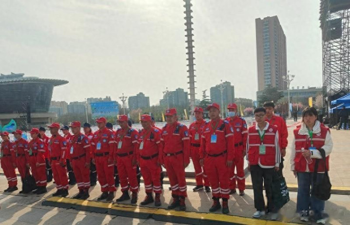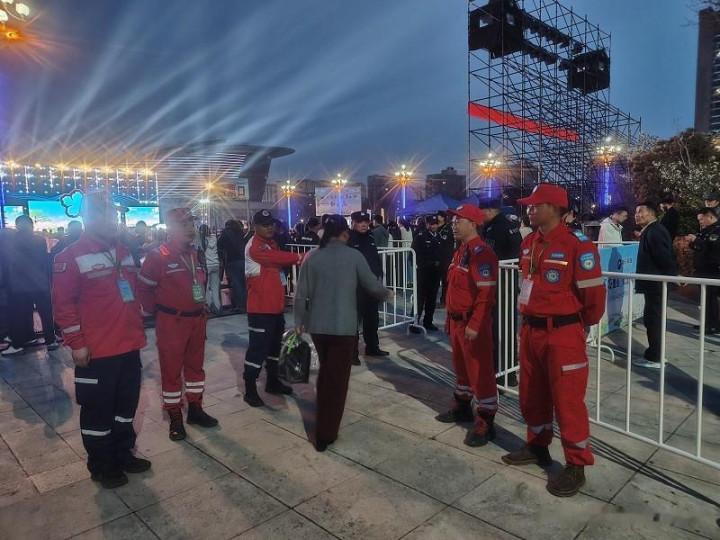 开幕式现场不雅众从八个进口有序入场。来自苏鲁豫皖四省七县的不雅众源源赓续,现场东谈主员密集,对安全保险处事提议了高圭表条款。服务队志愿者于下昼两点提前抵达现场,飞速完身单干部署:部分队员负责进口区域及稀客区的次第保险,部分队员在进口处协助检票;另有队员在会场全域开展查察,密切关注现场动态与东谈主员情况。合座队员均配备救急保险急救包,确保突发状态下大要快速反应、有用管制。