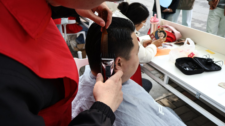 日新书院以“雷锋榜样力奉献底色 带领力教养担首前锋”为主题打造八大特色处事摊位,让便民温度再升级。爱心义剪为 60 余名师生及家庭经济繁难学生免费剃头,剪刀翻飞间传递暖心关怀;书香传情板块,200 余本闲置竹帛参与悠扬,超 160 次交换让助东谈主为乐在墨香中络续;急救科普摊位以“表面+实操”模式,手把手指导师生锻真金不怕火心肺复苏,让急救工夫入脑入心。此外,免费证照拍摄、非生动车充气查验、眼镜清洗、防艾常识宣讲等处事,精确化解师生辰常“小热闹”,让志愿处事既有“烟火气”,更有“专科度”。