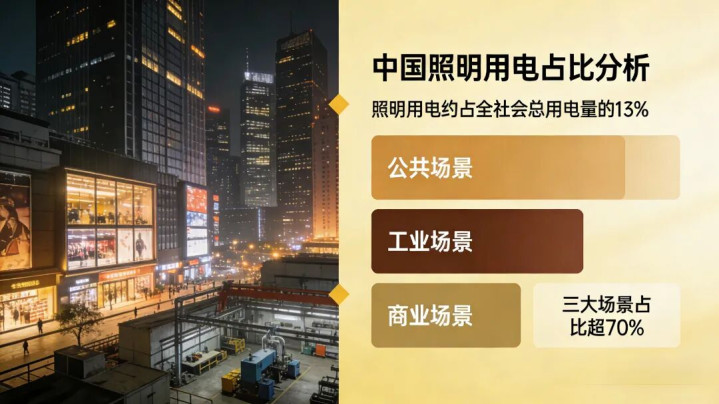 在全球“双碳”指标纵深推动的布景下,照明能耗手脚全社会电力滥用的关键构成部分,其绿色化、数字化转型已成为节能减排的中枢持手。数据浮现,我国照明用电约占全社会总用电量的13%,其中宇宙、工业、交易三大场景占比超70%。