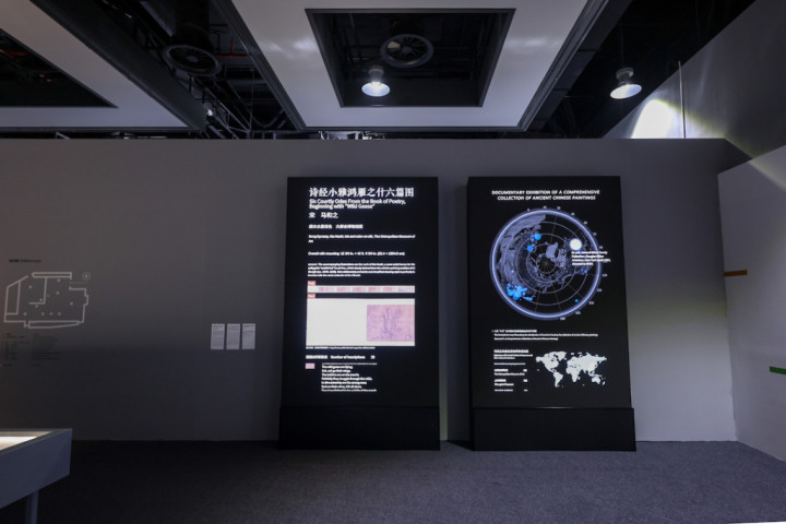 “集”——“中国历代画图大系”图像文件展将洒落在大众的100件中国古代画图以数字文件档案的阵势集聚到全部,其中包括唐代韩幹《照夜白图》、五代董源《溪岸图》、宋郭熙《树色平远图》、元倪瓒《虞山林壑图》、明董其昌《山河秋霁图》、清吴历《墨井草堂消夏图》等,通过“他者”视角对其进行文件梳理和数据可视化展示,挖掘其背后的流传过程。